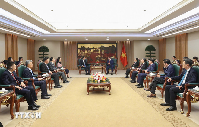 thu tuong pham minh chinh tiep dai su trung quoc 1Thủ tướng Phạm Minh Chính tiếp Đại sứ Trung Quốc tại Việt Nam Hà Vĩ. (Ảnh: Dương Giang/TTXVN)范明政总理会见中国驻越南大使何炜亲切交流。图自越通社